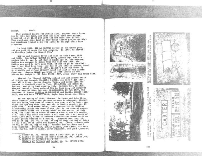 Carter_Elijah - farm photo - old headstones for Elijah and Susanna - and new headstones for them with story
