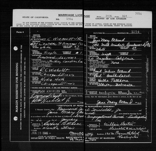 Wieboldt-Eklund Marriage License